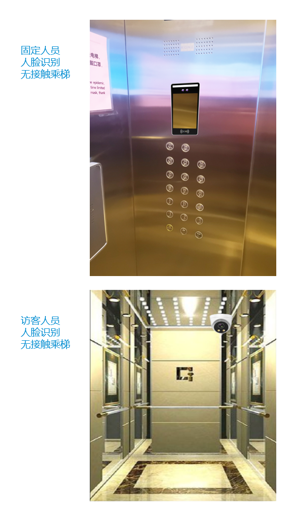 人臉無接觸乘梯:只需要人臉登記個(gè)人信息、刷臉即可實(shí)現(xiàn)無接觸乘梯通行,單個(gè)樓層刷臉自動(dòng)點(diǎn)亮按鍵,多個(gè)樓層刷臉后手動(dòng)按鍵,或者增加語音模塊,多個(gè)樓層權(quán)限刷臉后,直接語音乘梯,說無權(quán)限的樓層不會(huì)點(diǎn)亮按鍵,有權(quán)限的才能語音乘梯,公共樓層可直接語音乘梯。