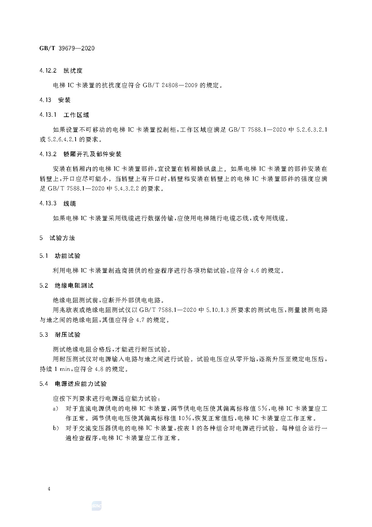 本標(biāo)準(zhǔn)規(guī)定了電梯IC卡裝置的技術(shù)要求、試驗(yàn)方法、檢驗(yàn)規(guī)則、標(biāo)志、標(biāo)簽和隨行文件,以及包裝、運(yùn)輸和貯存要求。