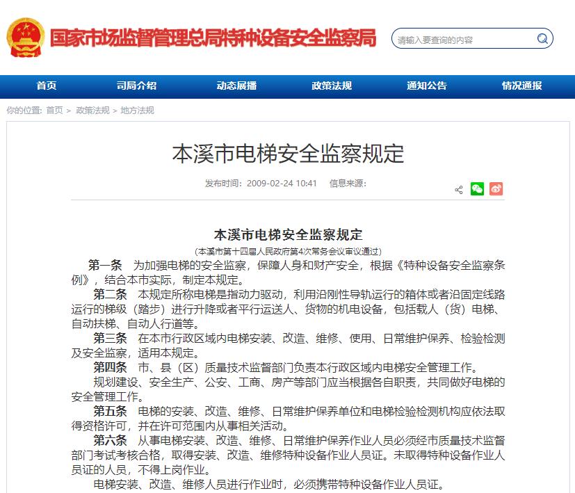 第四條 市、縣(區(qū))質(zhì)量技術(shù)監(jiān)督部門負(fù)責(zé)本行政區(qū)域內(nèi)電梯安全管理工作。