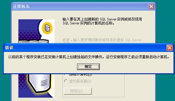 重新安裝SQL Server的時(shí)候出現(xiàn)的情況。“以前的某個(gè)程序已在安裝計(jì)算機(jī)上創(chuàng)建掛起的文件操作。運(yùn)行安裝之前必須重新啟動(dòng)計(jì)算機(jī)”的提示。